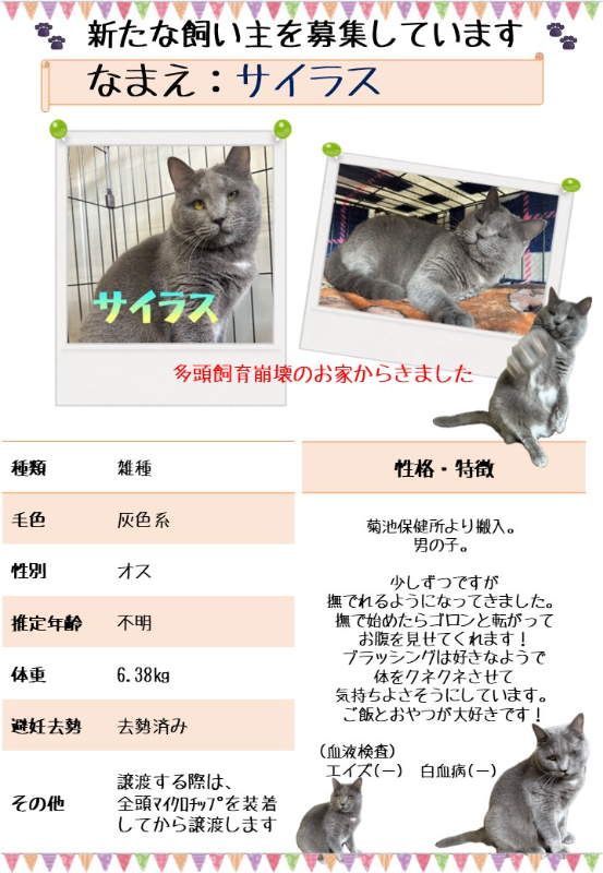 ※見学希望、譲渡希望の方は来所日時を前日までにご予約ください。