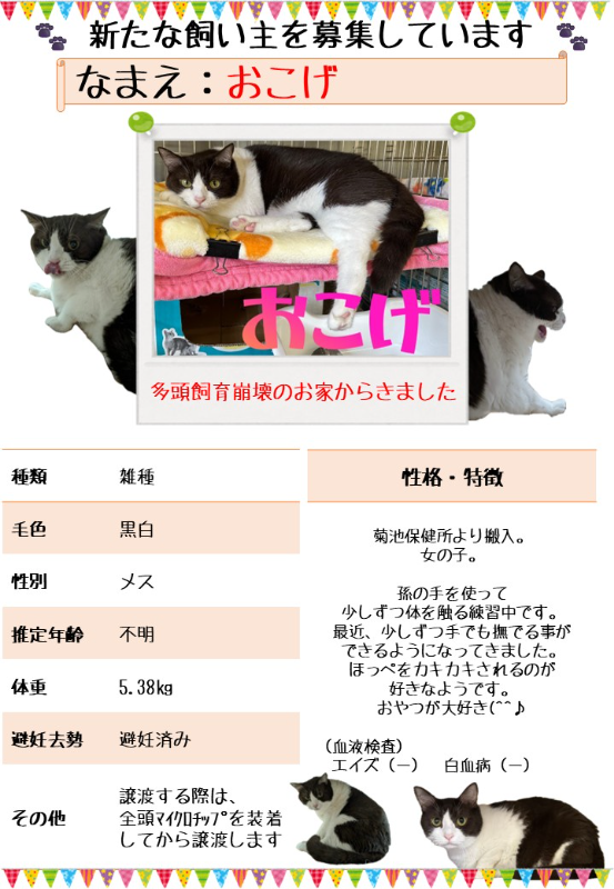 ※見学希望、譲渡希望の方は来所日時を前日までにご予約ください。