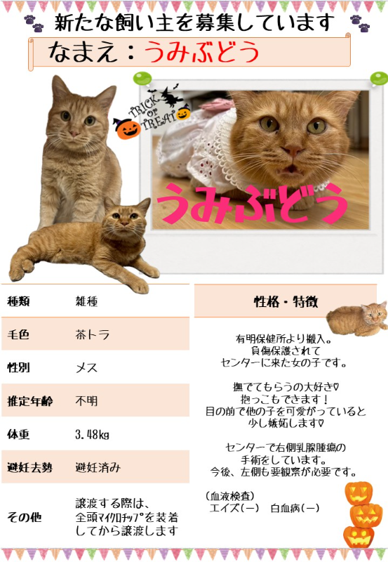 ※見学希望、譲渡希望の方は来所日時を前日までにご予約ください。