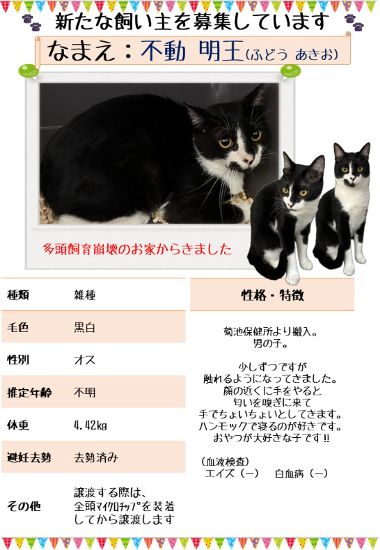 菊池保健所から搬入されました。