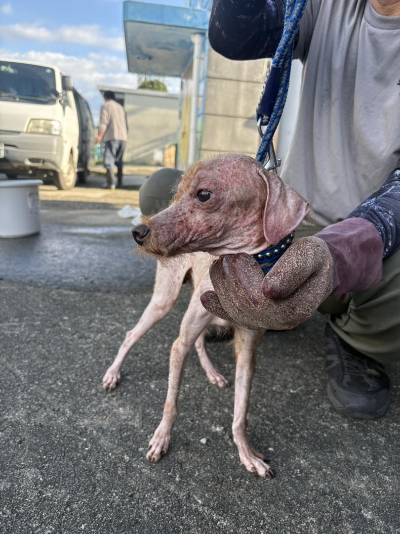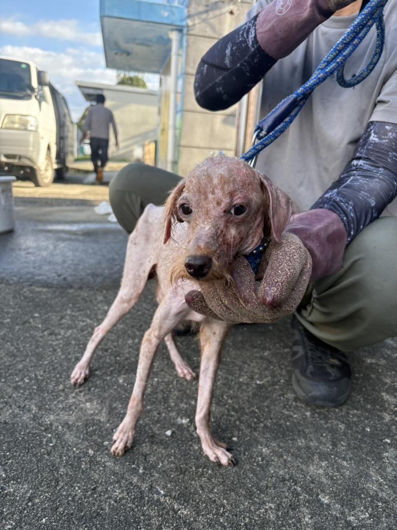 皮膚病により全身の毛が抜けていたため動物病院で治療を受けています。