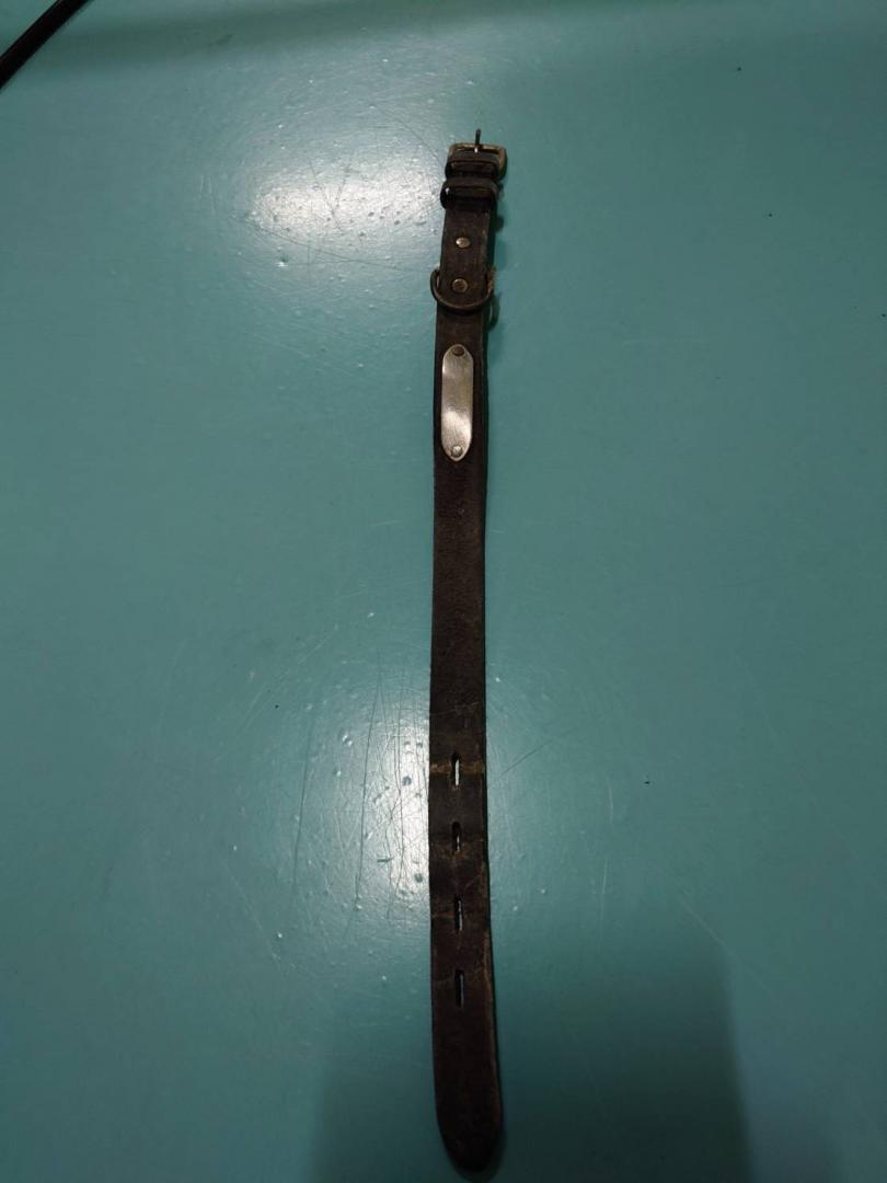 黒色革製の首輪をしています。