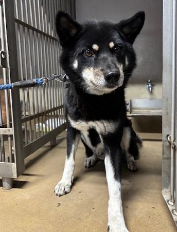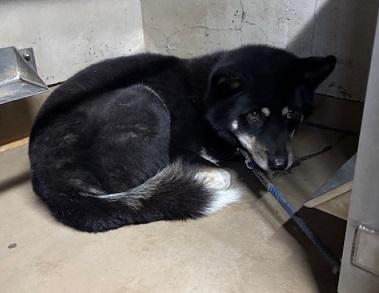見た目は黒柴犬のようで、尾の先は白色です。青色の首輪(布製)に青色のリードがついていました。少し臆病な性格のようです。