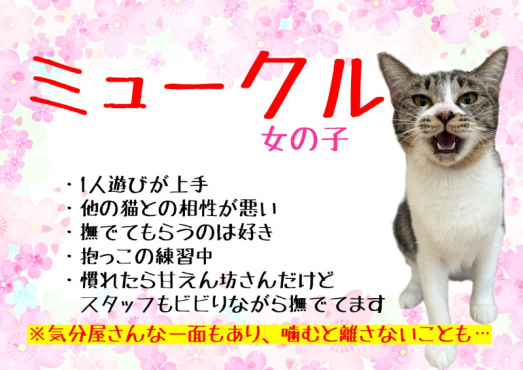 搬入して間もないため、はっきりとした性格は不明です。