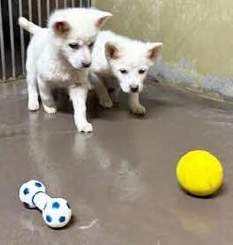 兄弟犬とも人とも、おもちゃで遊んだりしながら元気に成長しています。