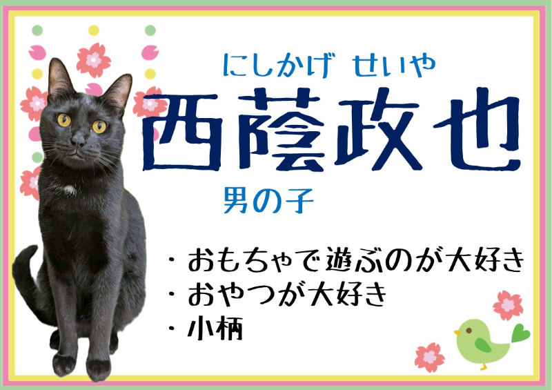 - 愛称:西蔭 政也(にしかげ せいや)