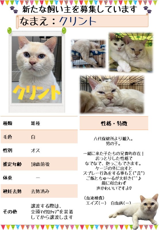 ※見学希望、譲渡希望の方は来所日時を前日までにご予約ください。