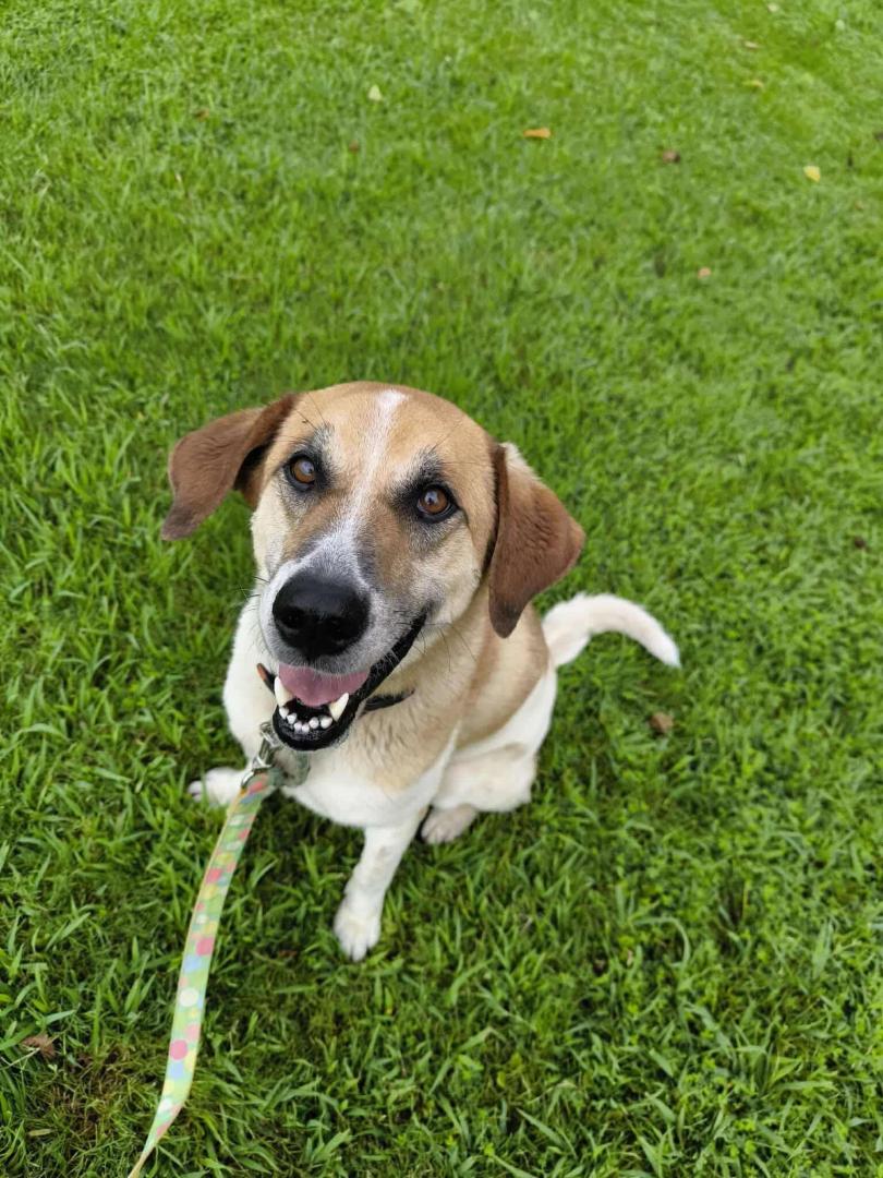 正面からみたら、ちょっとたれ目のかわいいワンちゃんです。