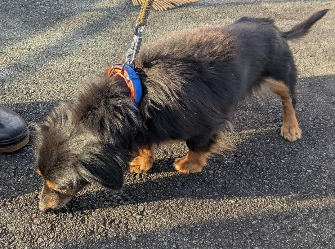 ミニチュア・ダックスフント(黒・茶)のメスで、チェーンの首輪がついていました。