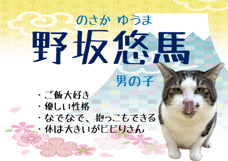 - 愛称:野坂 悠馬(のさか ゆうま)