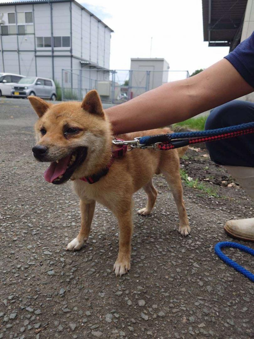 ※大津町高尾野で保護され、革製青色の首輪及びチェーンリードを装着していました。