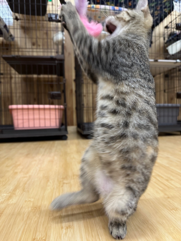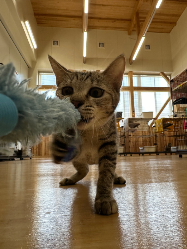 同じぐらいの月齢の子たちとは仲良く遊ぶことができますが、年上の子たちに対してはシャーシャーで気が強いところがあります。