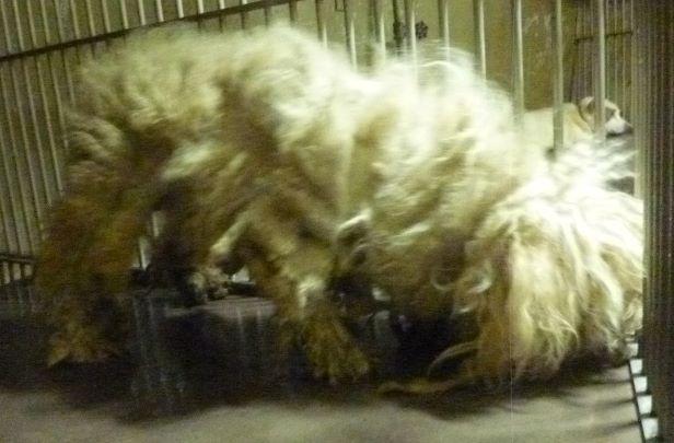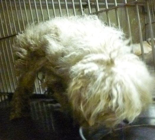毛玉や汚れがひどく、目が見えにくいせいか、触ると噛もうとします。