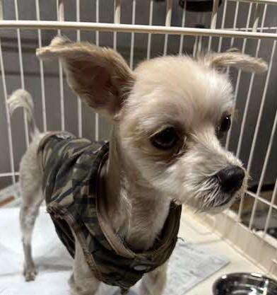 - 岱明町鍋で保護した、薄茶色の小型犬です。
